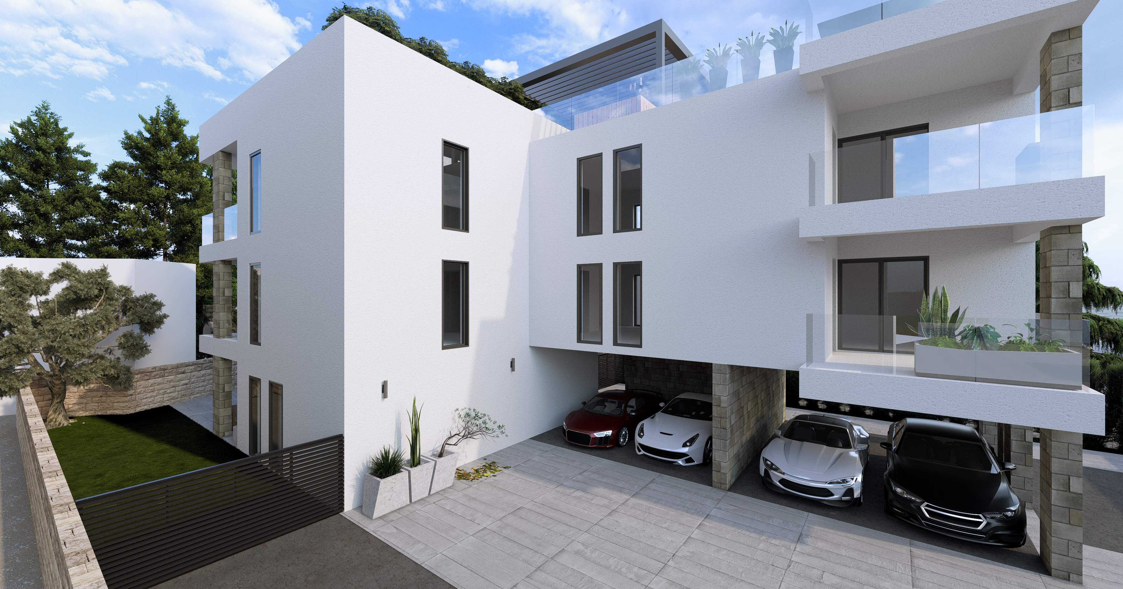 Prema zahtjevu klijenta, boje i materijali vanjskih obloga poštuju okolinu u koju će se objekt smjestiti kako bi se maksimalno uklopio u nju.