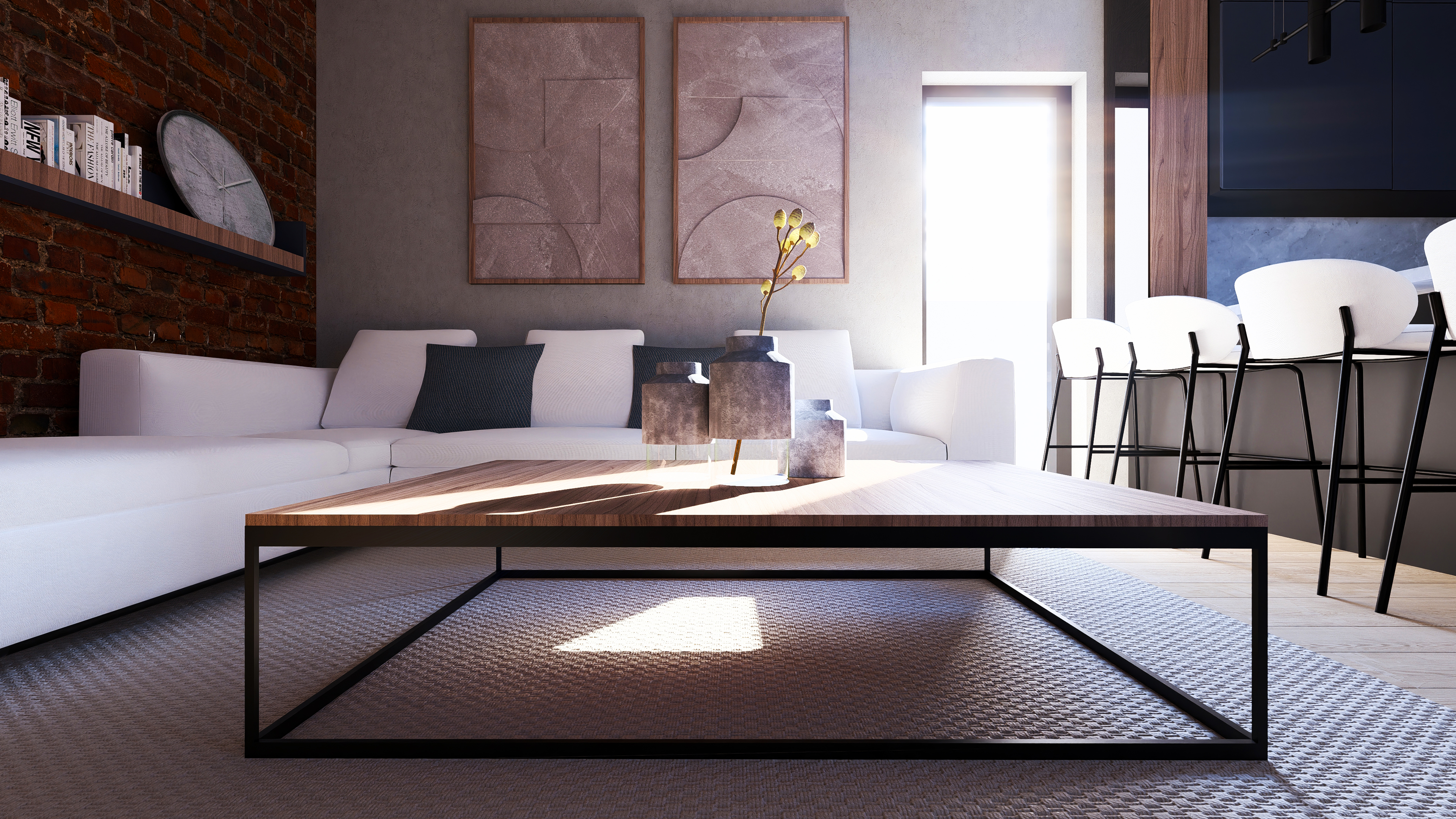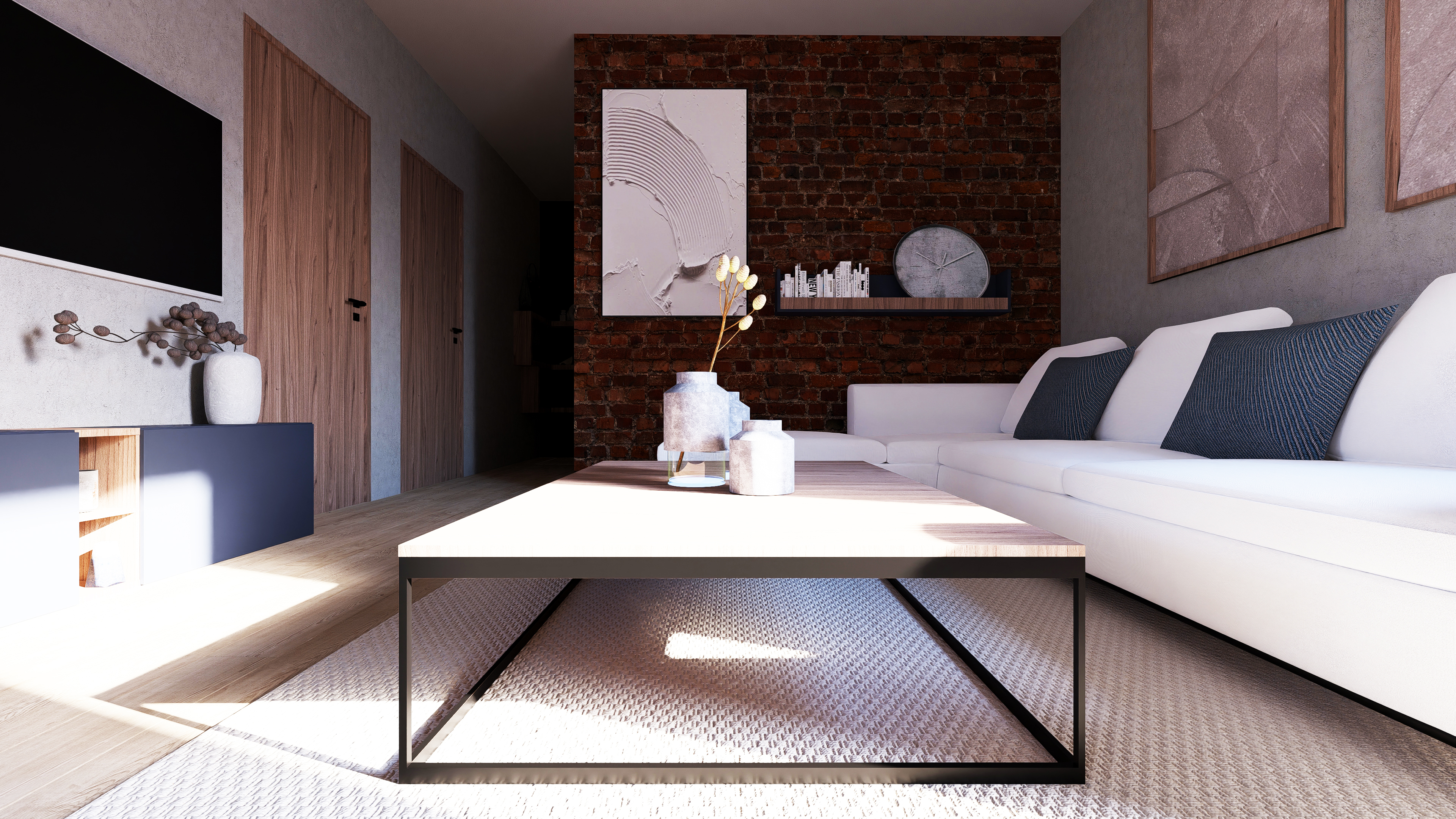 Vizualizacija obuhvaća dnevni open space koji se sastoji od kuhinje, blagovaonice i dnevnog boravka s izlazom na veliki natkriveni balkon.