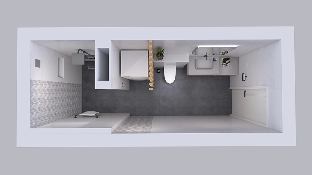 Osim detaljne renovacije, radi se o projektu proširenja postojeće kupaonice. Prošireni prostor u odnosu na stari razmještaj treba primiti i perilicu i sušilicu rublja.