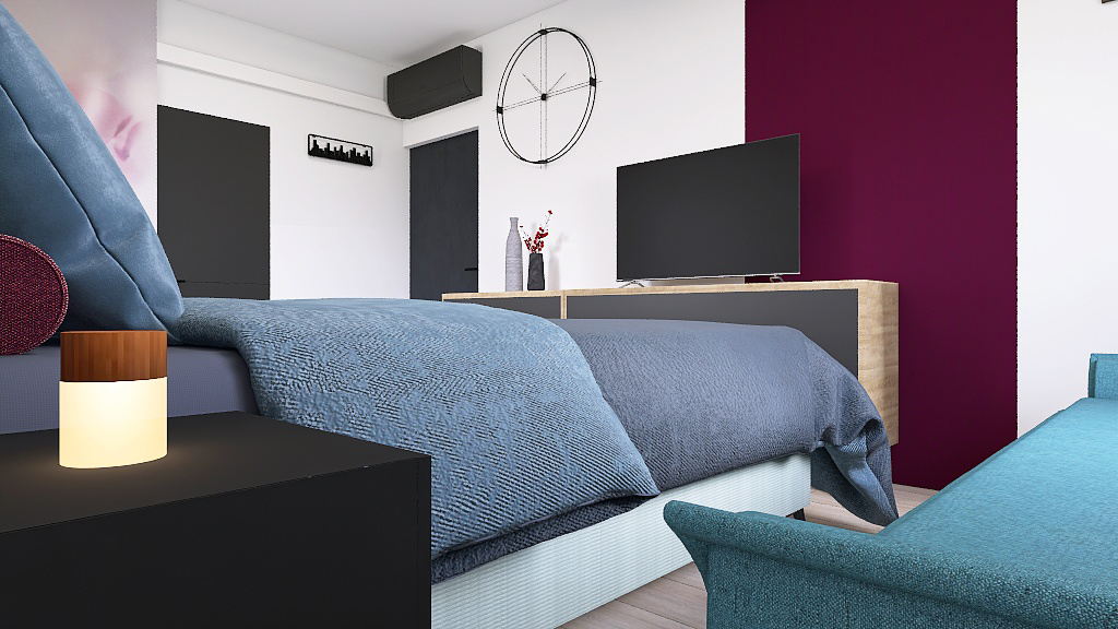 Kako bi se maksimalno osigurala ugodnost boravka gostiju, a poštujući strukturne elemente koji se neće mijenjati (pod i struja) - u sobu će se iznad ulaznih vrata ugraditi klima jedinica jačine 2.5 kW za potrebe grijanja i hlađenja te ugraditi još jedan prozor na istočnoj strani zbog poboljšanja prirodne vetilacije prostorije. Soba će se opremiti potpuno novim namještajem koji se odlikuje prvenstveno udobnošću i kvalitetom. Krevet ima visoki, udobni madrac, a dodatno rješenje za spavanje je kauč na razvlačenje s ugrađenim madracem te s ta dva elementa, soba može ugostiti 4-5 osoba. Soba će imati i kutak s radnim stolom kao i dvije komode za odlaganje posteljine i odjeće koje služe i kao nosač za TV.
